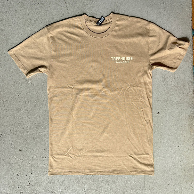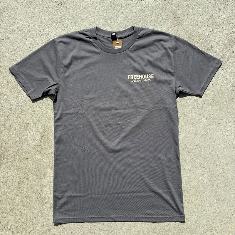 Our Treehouse Film Roll est. 2012 design on back w/Treehouse Analog Selects logo on front left chest printed in off-white.